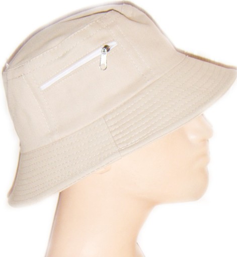 Polecam nową czapkę męską kapelusik typu bucket w spokojnym beżowym kolorze,u góry po jednej stronie kieszonka zapinana na suwaczek po drugiej bez zapięcia,tkanina grubsza,miękka i miła w dotyku,w przewadze z bawełny,bardzo ładna,gorąco polecam!