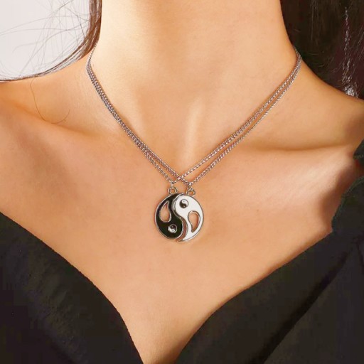 Naszyjnik yin yang to symbol równowagi między dwoma uzupełniającymi się przeciwieństwami, które razem reprezentują całkowitą całość. Zestaw zawiera dwa naszyjniki, którymi można podzielić się z wyjątkową osobą, aby uczcić swoje różnorodne osobowości i piękny związek.