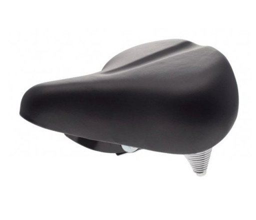 OPIS: Siodełko na sprężynie, materiał pokrycia: elastyczny poliuretan, jarzemko w komplecie, wymiary: długość: 260 mm, szerokość: 245 mm, kolor: czarny.