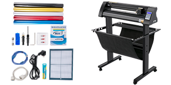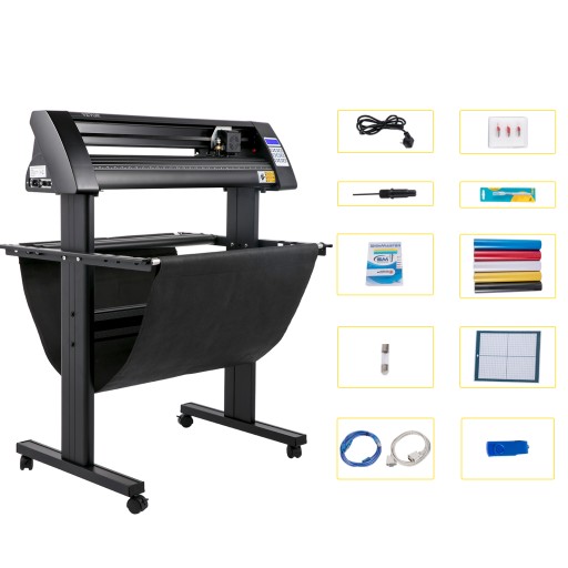 Ten ploter do wycinania znaków zawiera kompletne akcesoria dla lepszego wykorzystania, takie jak pamięć USB wraz z instrukcją instalacji i obsługi, 5 arkuszy winylowych, mata do cięcia i wymienne ostrza. Oferuje również bezpiecznik posiadający funkcję zatrzymania awaryjnego, aby zapobiec niebezpieczeństwu.