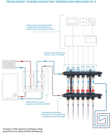 - Rozdzielacze poliamidowe ProCalida EF1 K stosuje się w instalacjach ogrzewania lub chłodzenia płaszczyznowego.