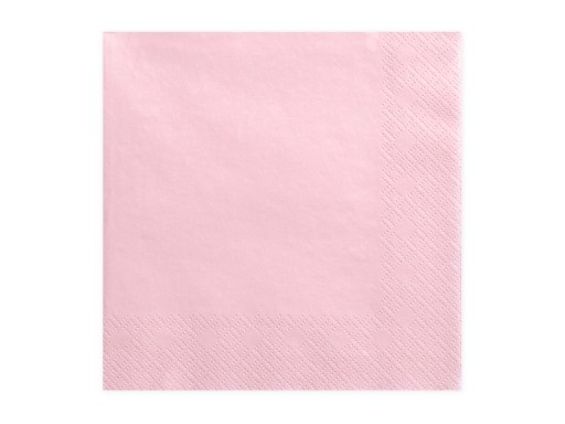 Serwetki trójwarstwowe w kolorze jasnoróżowym, wymiary ok. 33 x 33 cm.