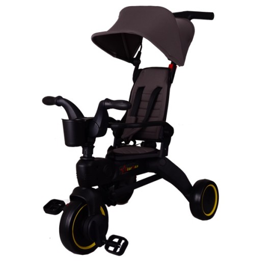 Funkcjonalny, nowoczesny, praktyczny rowerek trójkołowy z prowadnikiem.