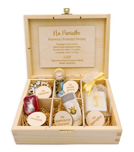 *Zawartość pudełka (różaniec, medalik, banknot itp.) nie wchodzą w skład oferty - jest to przykładowa aranżacja.
