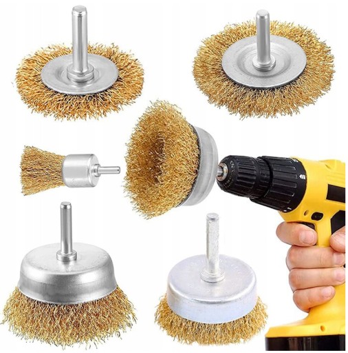 - ✳️ Zestaw 5 szczotek drucianych przeznaczony do wiertarek i wkrętarek ze standardowym gwintem 1/4''.