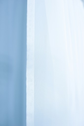 Oferujemy państwu firanę z białej tkaniny typu woal wykończonej u dołu lamówką.