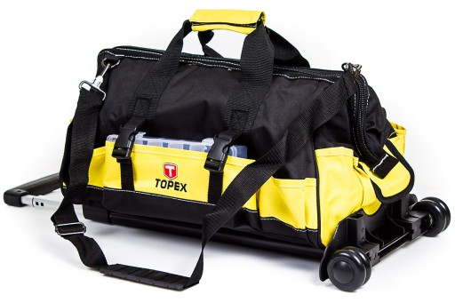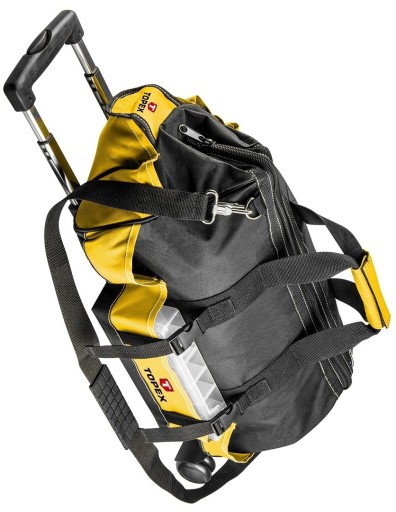 Torba monterska na kołach Topex (nr ref. 79R449) wykonana z trwałego poliestru, gwarantującego długoletnią trwałość torby.