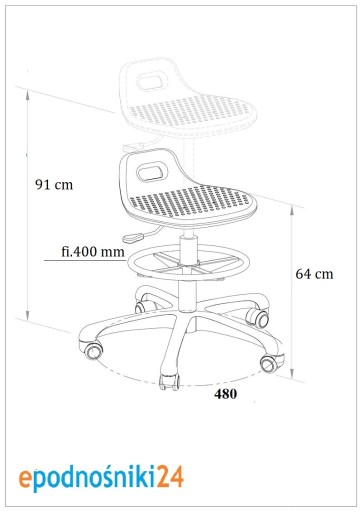 - Wysokość siedziska 64 cm - 91 cm
