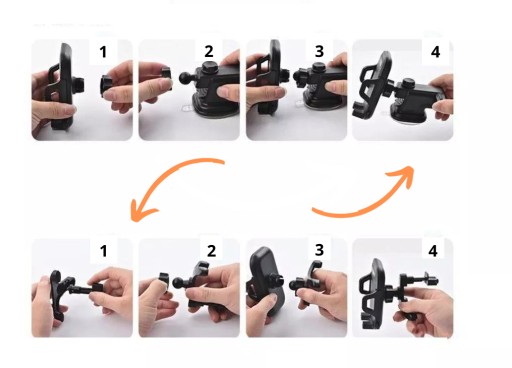Wciśnij Przycisk-> Otwórz Ramię Zacisku W 1 Sekundę-> Włóż Telefon