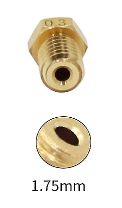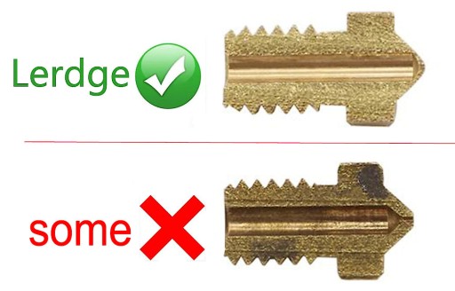 Dysze są wykonane z mosiądzu co w połączeniu z nieco dłuższą częścią gwintowaną w sposób oczywisty wpływa na lepsze przewodzenie termiczne, czyli na skuteczne nagrzewanie w nich filamentu z zachowaniem chłodniejszego hotend'u oraz rurki doprowadzającej filament.