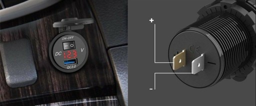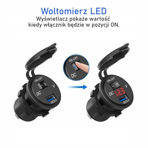 Ładowarka motocyklowa / samochodowa USB QC3.0 z wyłącznikiem i woltomierzem!