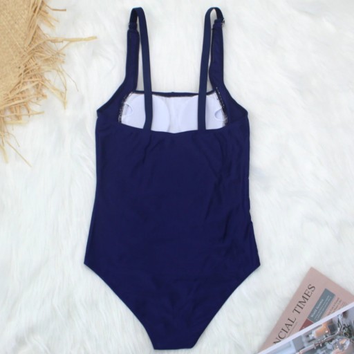 Jednoczęściowy kostium kąpielowy o klasycznym kroju na szerokich ramiączkach zapewniających wygodę noszenia.