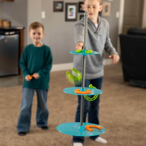 Klasyczna zabawa w rzucanie podkową w innowacyjnej, domowej, niesamowicie wciągającej wersji. Gracze na zmianę rzucają gumowymi podkowami aby trafić i zahaczyć je na zawieszonym słupku i platformach.