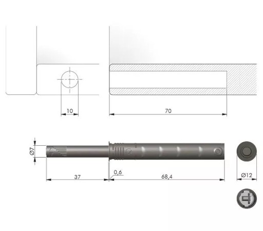 Tą wersję zatrzasku używamy razem z zawiasami samodociągającymi lub z hamulcem.