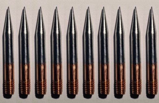 Groty wkręcane (gwintowane) z czystej miedzi elektrolitycznej rodzimego KGHM o czystości 99,99% , super przewodzące ciepło. Walcowane z najczystszego drutu "YKY 16 żo". Gwint wyciskany M4 + przebieg cylindrycznym walcem wgłębnym, zgniot na prasce 60Mpa dla umocnień, później szlif 'ostrości' i pobielenie by perfekcyjnie łapały cynę. 10 sztuk w komplecie - same stożki, ale bardzo proszę pisać w dodatkowym polu uwag jakiego typu potrzeba np. minifala lub spłaszczone - zawsze tę informację sprawdzam. Wytrzymalsze od oryginalnych, nie wypalają się tak szybko (czyściutka miedź, brak cynku). Nie są odporne na kwasy, ani agresywne topniki typu TS-81, jednak została znacznie wydłużona trwałość dzięki pobieleniu miedzi stopem SAC305 firmy Alpha z 3% zawartością srebra. Ważne by rozsądnie grzać i nie czyścić np. agresywnym salmiakiem, tylko przecierać wilgotną gąbką. Pięknie zwilżone - zdjęcia tego w pełni nie oddają bo są mocno powiększone. Mocno polecam gdyż na oryginałach ciężko pracować, tak szybko się rozpuszczają. Domyślnie w każdym zestawie wysyłam 10 grotów stożkowych (szpikulców). Spłaszczone / łamane i ścięte lub inne nietypowe - po dopisaniu/zapytaniu. Kształty poza możliwościami walcarki proszę ustalać przez formularz allegro. Zestaw 10 grotów w aukcji jest przeznaczony domyślnie dla lutownic Parkside z Lidla i z biedronki o nazwie "WYPALARKA Z FUNKCJĄ LUTOWANIA NITEO TOOLS". Groty pasują do wszystkich innych stacji/lutownic np. Niteo Tools St0239-19 LuxTool (groty wkręcane gwint metryczny M4).