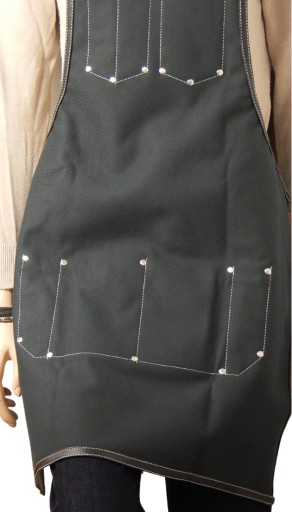 - 4 kieszenie umieszczone w dolnej części fartucha, na które składają się 2 duże kieszenie w centrum oraz 2 mniejsze po bokach