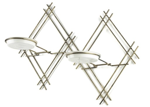 Wykonany z metalu, prosty i stylowy kwietnik w kolorze czarno złotym. Klasyczny wygląd kwietnika sprawi ,że Twoje kwiatki będą wspaniale wyeksponowane na ścianie. Kwietnik pozwala zawieszenie dwóch kwiatów i w zestawie znajdują się proste podstawki na kwiaty. Kwietnik przecierany na kolor patyna złota.