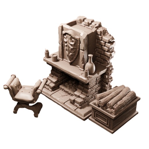 Fireplace - Palenisko Sceneria - Figurka RPG DnD Pathfinder - Flesh of Gods - 3D Monkey
