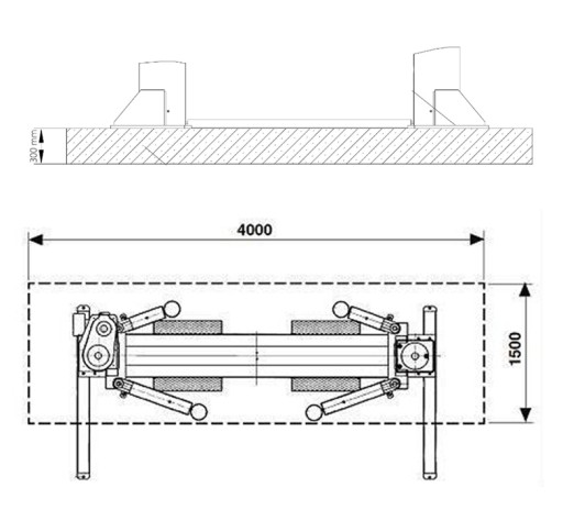 - Dwukolumnowy podnośnik elektrohydrauliczny firmy ELPRO o udźwigu 4 tony.