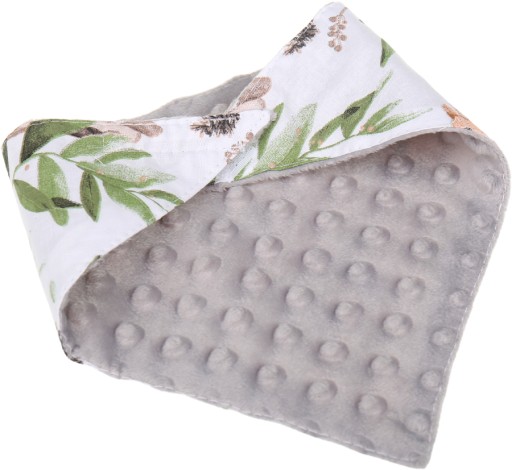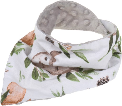 Dwuwarstwowa apaszka Babymam uszyta jest z bawełny i pluszu minky z bąbelkami. Jest to „must have” każdej wyprawki dla dziecka. Bawełniana strona jest chłonna, dlatego może pełnić rolę śliniaczka, strona minky natomiast jest milutka i ciepła gdyby wiatr na spacerze okazał się zbyt dokuczliwy. Nasza apaszka ma kształt trójkąta, układa się swobodnie na szyi dziecka i stanowi ładny element ubioru.