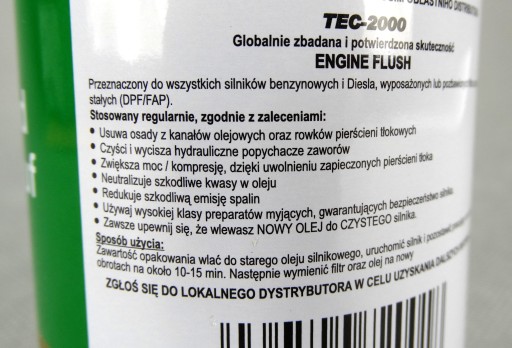 Sposób użycia: Dodać do starego oleju silnikowego przed wymianą