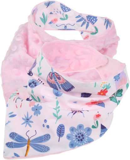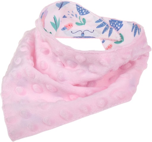 Dwuwarstwowa apaszka Babymam uszyta jest z bawełny i pluszu minky z bąbelkami. Jest to „must have” każdej wyprawki dla dziecka. Bawełniana strona jest chłonna, dlatego może pełnić rolę śliniaczka, strona minky natomiast jest milutka i ciepła gdyby wiatr na spacerze okazał się zbyt dokuczliwy. Nasza apaszka ma kształt trójkąta, układa się swobodnie na szyi dziecka i stanowi ładny element ubioru.