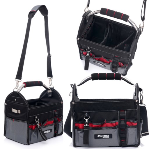 Torba narzędziowa, monterska otwarta marki Kraft&Dele to idealny organizer narzędziowy dla wszystkich monterów (elektryków, hydraulików, glazurników itp. ) Sztywne dno pokryte kompozytowym tworzywem zapewnia trwałość, a wiele kieszeni porządek oraz szybki dostęp do potrzebnych narzędzi.