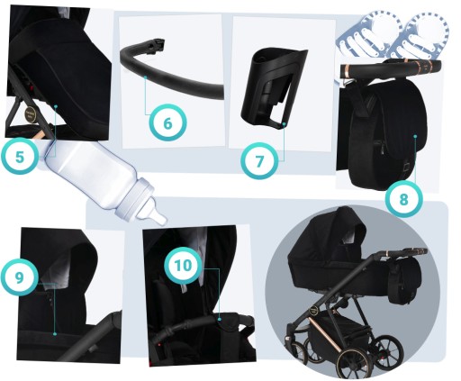 * wszystkie wymienione akcesoria są oryginalnymi produktami firmy PARADISE BABY, które są dopasowane kolorystycznie do tapicerki i stelaża wózka, zdjęcia są poglądowe i mogą odbiegać od ich oryginalnego wyglądu.