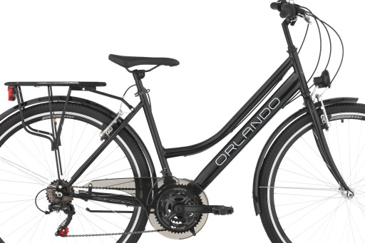 ORLANDO TREKKING to nowy model stworzony specjalnie na nowy sezon. Sprawdza się nie tylko do jazdy miejskiej, ale też weekendowych wycieczek za miasto. Trekkingowa wersja pozwala wygodnie jeździć niezależnie od warunków i nawierzchni. Bardzo dobrze radzi sobie na drogach leśnych i bezdrożach. Fabrycznie bogato wyposażony w oświetlenie przód i tył, bagażnik, błotniki i nóżkę rowerową.