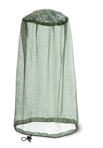 Moskitiera na głowę najlepiej sprawdza się w czapce z rondem, ale można ją nosić z czapką bejsbolową lub bez innego nakrycia głowy. Dolna część posiada sznurek do ściągania dla zwiększonej ochrony.