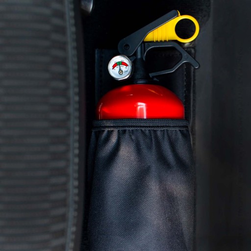 Kieszeń przeznaczona do gaśnicy o średnicy do 10cm. Rzep na całej długości pleców, plecy usztywniane. Dzięki zastosowaniu kieszeni w łatwy sposób unikniemy zbędnego i niebezpiecznego przemieszczania się gaśnicy.
