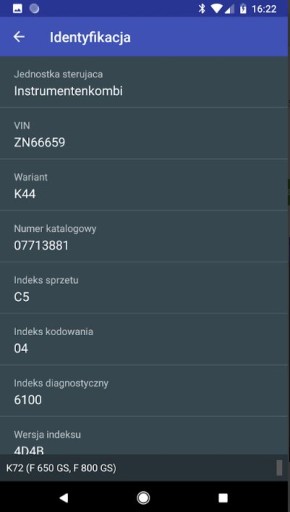 Przykładowo zestaw Motoscan+iCar 4 PRO zapewnia dostęp do sterowników w BMW K61 K 1600B: