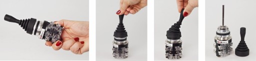 Montaż odbywa się poprzez odkręcenie pierścienia z osłoną oraz pierścienia mocującego, przełożenie joysticka przez otwór, założenie uszczelek i ponowne przykręcenie pierścieni.