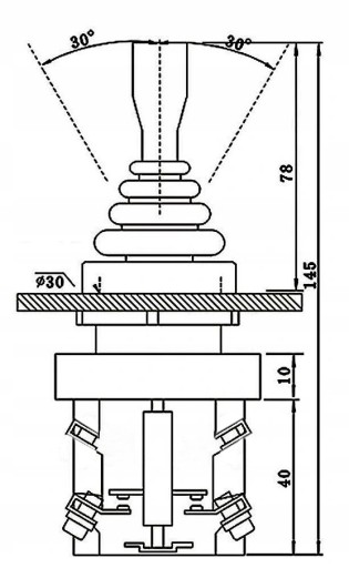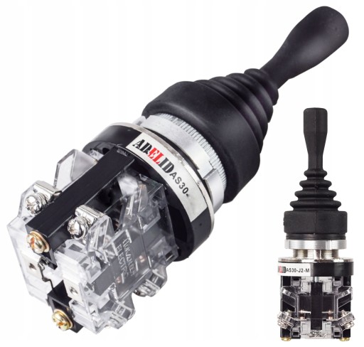 Przełącznik typu JOYSTIC, 2- pozycyjny, bistabilny- (zatrzask) pozostający na pozycji przełączenia, o średnicy montażu 30 mm.