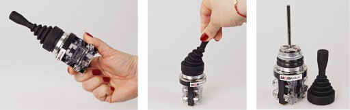 Montaż odbywa się poprzez odkręcenie pierścienia z osłoną oraz pierścienia mocującego, przełożenie joysticka przez otwór, założenie uszczelek i ponowne przykręcenie pierścieni.