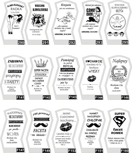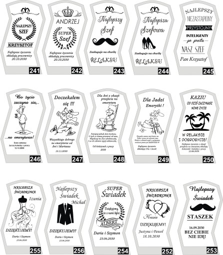 - Wszystkiego najlepszego ▪ Dla wyjątkowej osoby ▪ Kocham Cię ▪ Dziękujemy ▪ Dziękuję ▪ Powodzenia ▪ Mam pytanie ▪ Gratulację ▪ Pusta - bez graweru