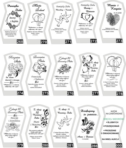 Poniższe wzory mają charakter poglądowy. Grawer ma jasny kolor - biały/mleczny (NIE jest czarny) . Zdjęcie rzeczywistego graweru na zdjęciu powyżej.