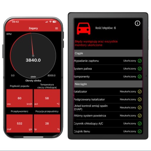 - Odczyt i kasowanie błędów OBD-II