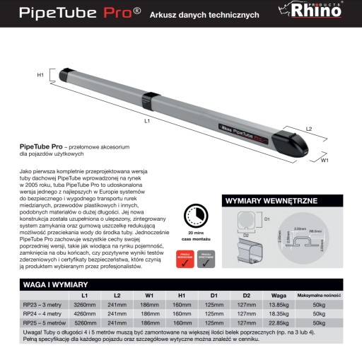 Bagażnik Dachowy Tuba Na Rurki Rhino 5 Metrów