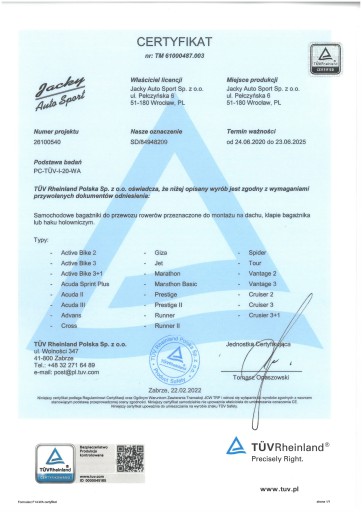 - Certyfikat TUV