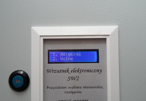 Za pomocą przycisków umieszczonych w środku skrzynki, można resetować licznik a także zmieniać nastawy czasu po wrzuceniu monety.