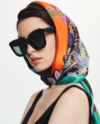 - duże wymiary chusty pozwalają owinąć modnie szyję, puścić luźno w dół lub zarzucić na ramiona i plecy.