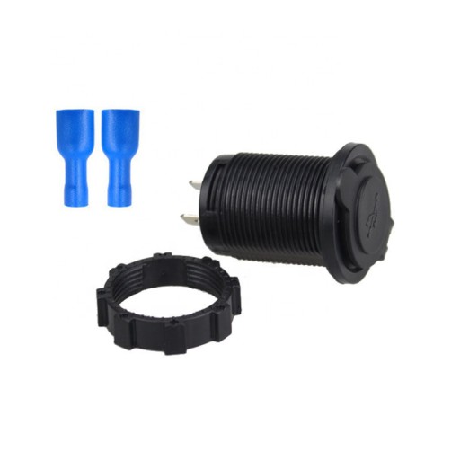 Podwójne gniazdo USB zamontowane w uniwersalnej obudowe znajdzie zastosowanie w wielu różnych pojazdach np. motocykle, pojazdy osobowe, busy, łodzie, skutery itp.