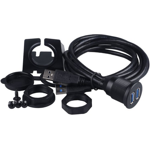 W zestawie znajdują się dodatkowe mocowania dzięki którym możemy zamontować gniazda USB w otworze 26mm lub w innym miejscu za pomocą dołączonego do zestawu panelu montażowego.