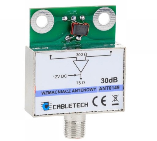 Wzmacniacz antenowy 30dB ekranowany służy do wzmacniania sygnałów TV naziemnej analogowej i cyfrowej w formacie DVB-T / DVB-T2: MUX-1, MUX-2, MUX-3, MUX-8, MUX-POLSAT (pasma VHF i UHF, kanały 6-60). Stosowany w instalacjach gdzie odległość do nadajnika wynosi: 30-90km (w zależności od ukształtowania terenu i mocy nadajnika).