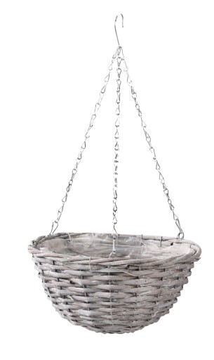 SZARY WIKLINOWY KOSZ WISZĄCY NA KWIATY 28x28x15/50 cm
