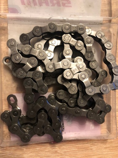 Łańcuch SRAM PC-830 6/7/8-rzędowy wykonany w technologii PowerChain. Odznacza się wysoką wytrzymałością i sztywnością. W zestawie spinka PowerLink.