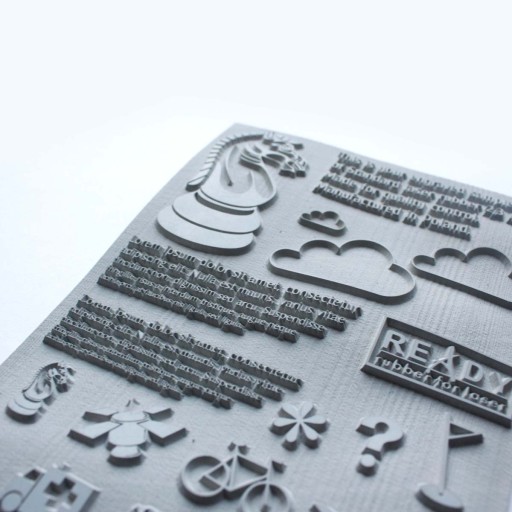 - profesjonalnie wyciętą laserem gumkę do pieczątki o maksymalnym rozmiarze 47x18 mm.
