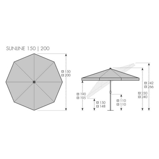 - Wysokość pod parasolem: ok. 190 cm