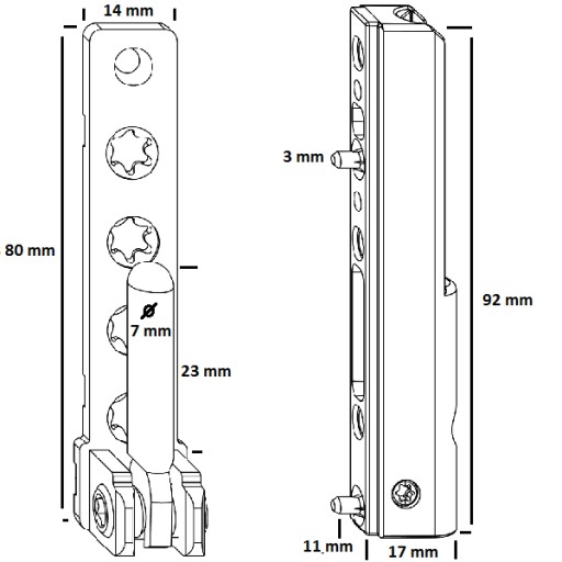 Rozstaw pomiędzy tylnymi bolcami 7 cm